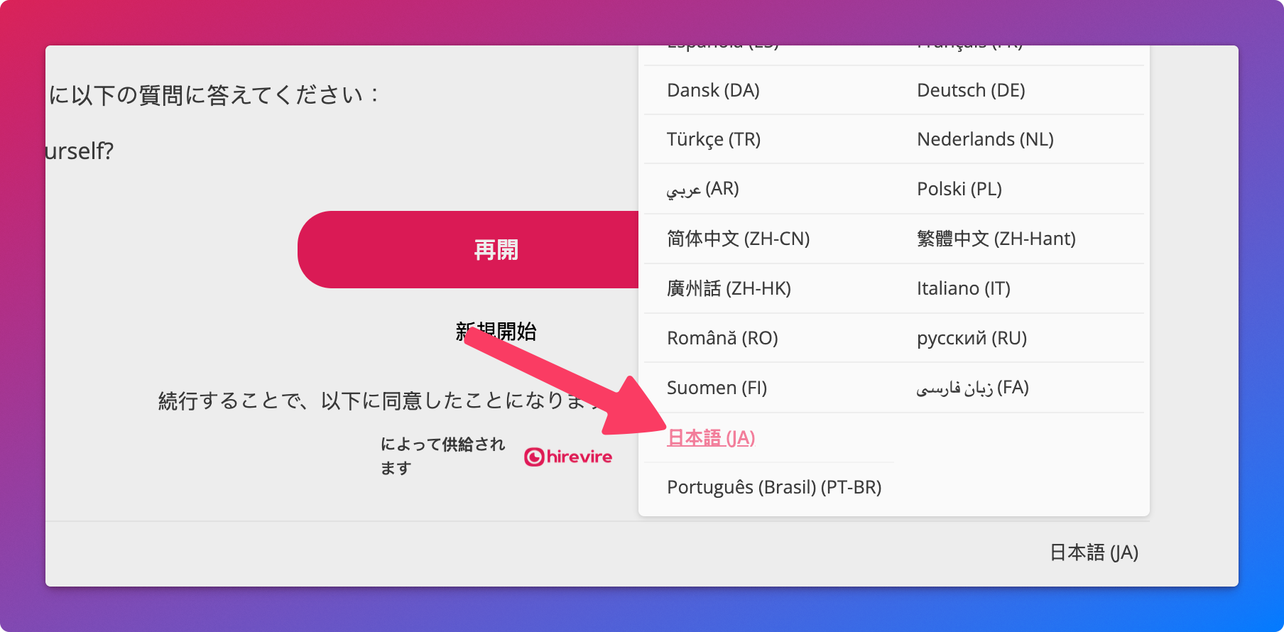 The application and career pages change to the default language the user has selected in the browser. The links to be shared with the candidates can also have the language set.