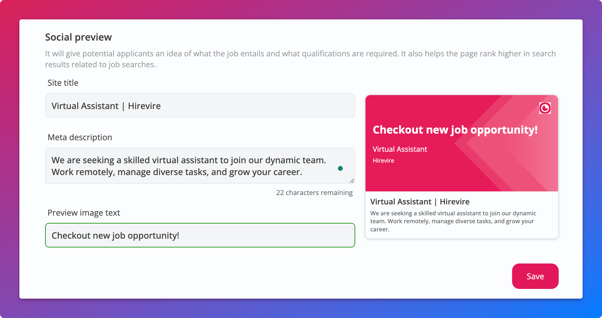 Social Preview Improvements for Job post links